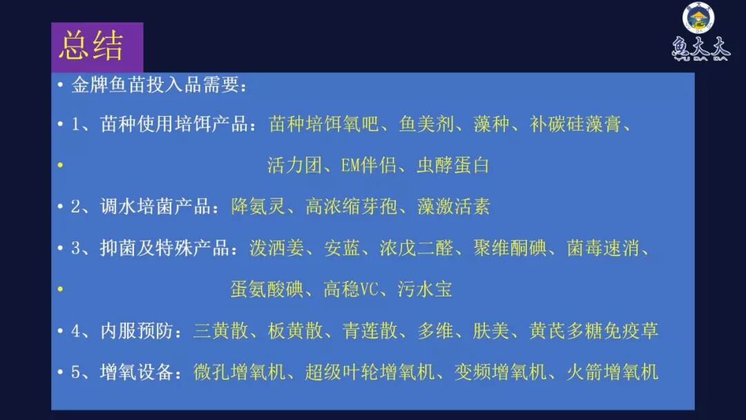 综合防病措施:水质调节和预防为主是苗种培育成功与否的关键,在水体中定期泼洒高稳VC和藻激活素有利于鱼类生长。培育苗种可使用培饵新产品,配合调水培菌产品的使用,内服中药预防病害的发生,并搭配增氧设备的使用,这样鱼儿才能更好地生长。