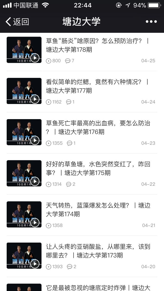 想了解更多草鱼养殖和培苗技术,立马加入《塘边大学》,目前已更新到第六期--草鱼养殖专题