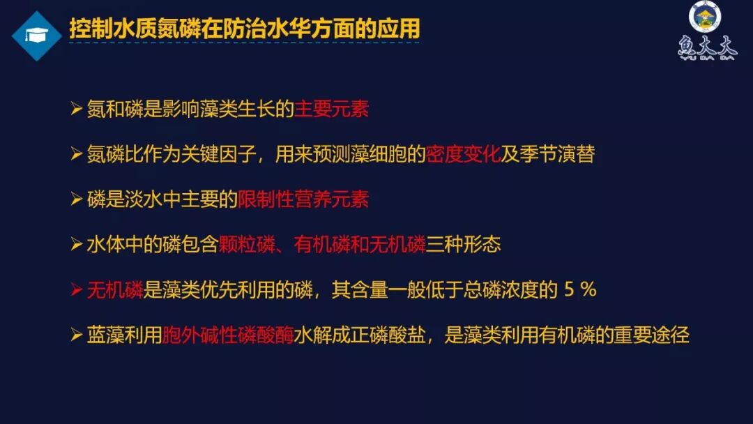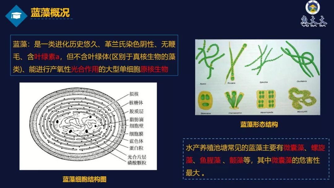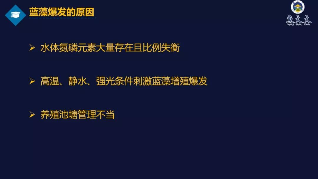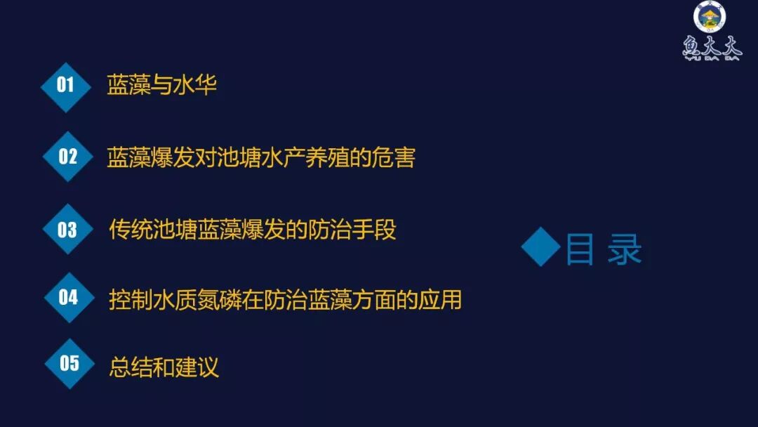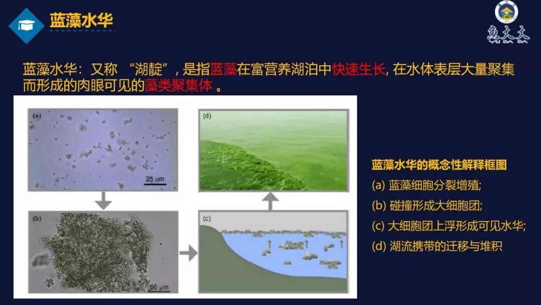 夏季高温时期,蓝藻大量爆发,容易引起水质恶化,严重时耗尽水中氧气而造成鱼类的死亡。蓝藻对池塘的危害日渐凸显,怎么处理蓝藻,成了养殖户重点关心的话题。杨博士主要从以下五个方面进行蓝藻课程讲解,主要包括蓝藻与水华的定义,蓝藻爆发对池塘的危害,常用的防治手段,以及控制水质氮磷在防治蓝藻方面的应用,最后做出了相应的总结和建议。