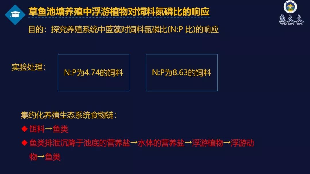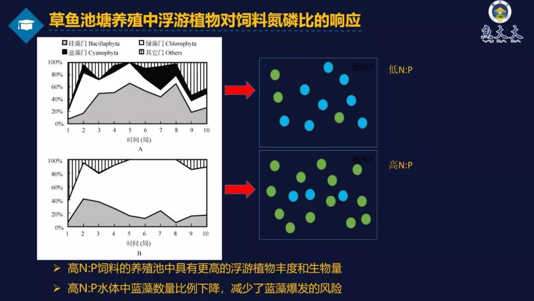 2、通过草鱼池塘养殖中浮游植物对饲料氮磷比的响应实验得出如下结论: