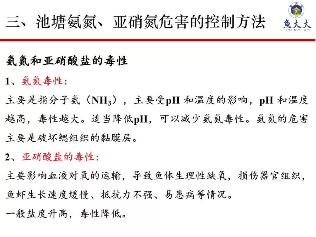 1、池塘氨氮及亚硝酸盐的管理,需要从养殖周期一开始就要注意