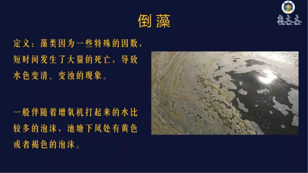 倒藻指池塘水质中生存的藻类发生了大量的死亡,导致水色变清、变浊的现象,一般伴随着池塘下风处有黄色或者褐色的泡沫。