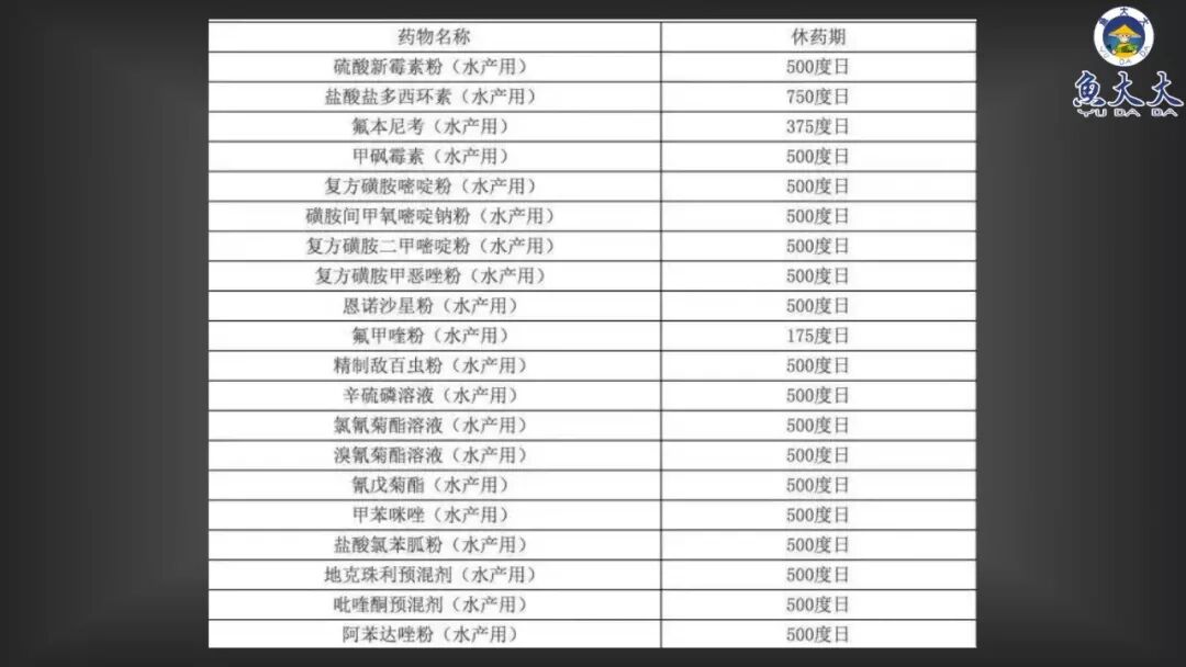 休药期公式:休药期=度日/这段时间内的平均水温,例如恩诺沙星,500度日除以这段时间的水温20度,等于25,那么休药期就是25天。