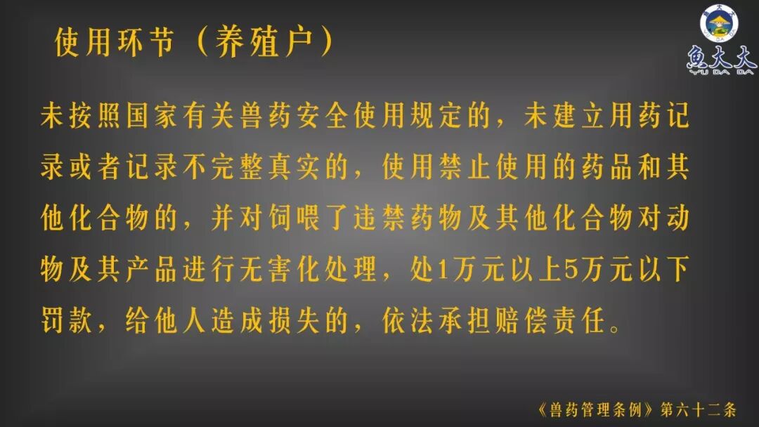 1、非法使用。例如非法使用孔雀石绿、氯霉素、呋喃类等禁用药,切勿使用禁用药和原粉。