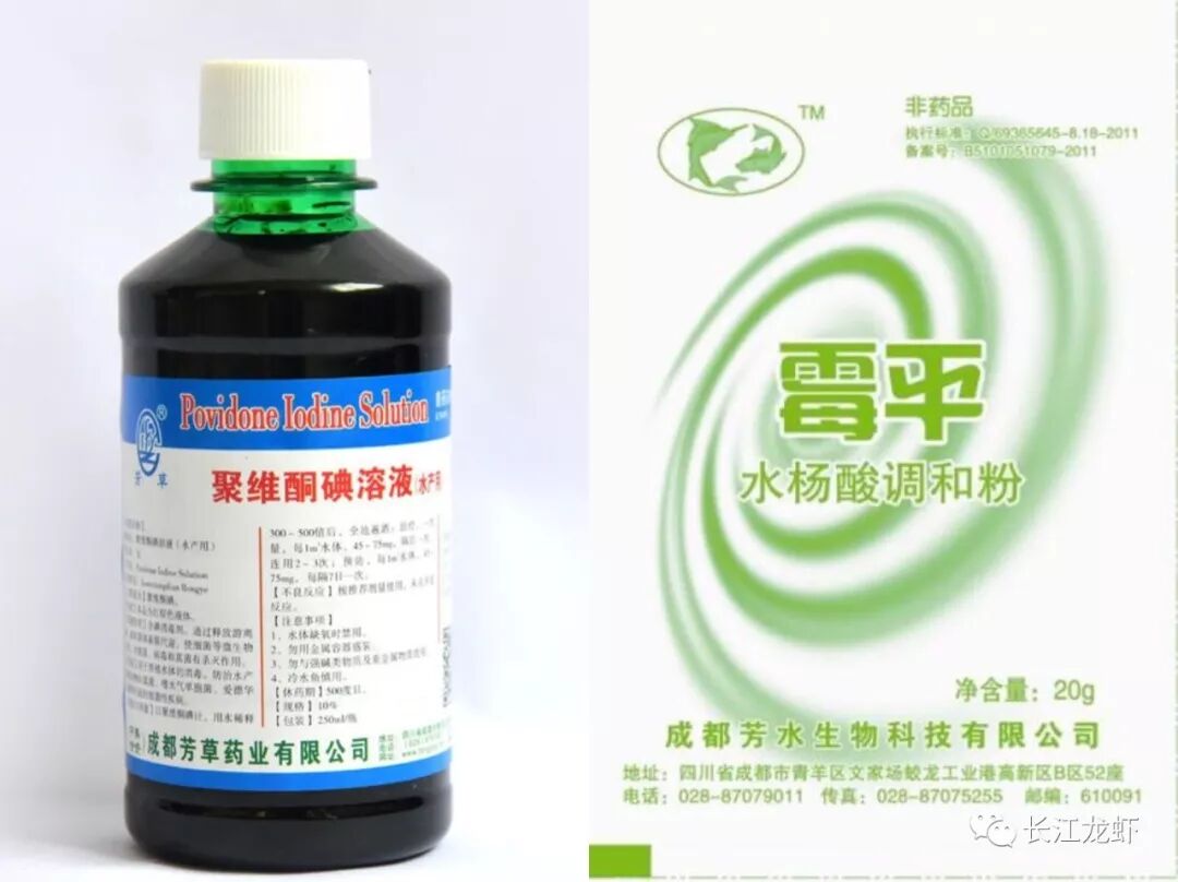 外用建议方案1:第一天使用50%的过硫酸氢钾复合盐(300-400克亩.米)兑水之后全池泼洒,第二天每亩一米水体使用芳水霉平(水杨酸)每20克搭配菌必清(聚维酮碘,250毫升)1瓶,分开使用。连续使用2-3天