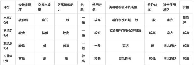 传统30亩塘,单产2000斤左右投料区增氧设备比较: