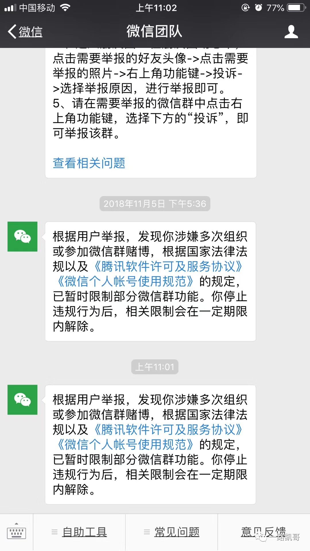 这位朋友和许多水产朋友一样,有很多微信群,群里的朋友们发违法、赌博的链接,明明自己没参与,却跟着“倒霉”,导致自己的微信某些功能被限制。