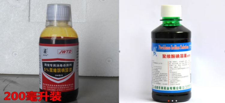 (1)遇光易挥发,需要避光保存。所以说我们很多碘制剂的包装瓶都是深色包装的,如果养殖户买到的聚维酮碘发现是下图透明瓶子的包装,那显然买到假的东西了。