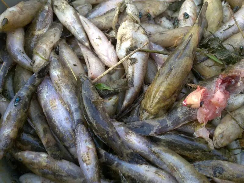但是非常不幸,这个养殖户自己采取的积极的方法,他用硫醚杀星泼完了。三天以后,鱼游塘,死鱼。水变浑,再过了两三天一个星期,他说鱼全部死亡了,鱼,一条不剩,所有的水又臭。