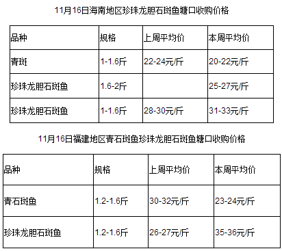 附上近期石斑鱼的报价表