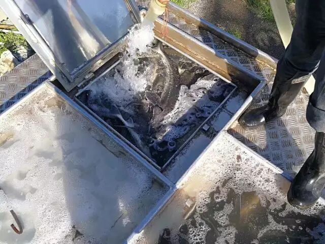 2、拉网时,水温过高,拉网后在网内使用“5-10包泼洒姜+葡萄糖1-2公斤”兑水泼于网内,再选鱼,并带水过称,上车。
