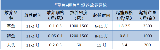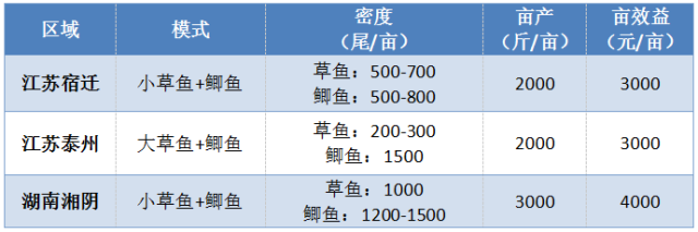 全国几个典型区域的“草鱼+鲫鱼”混养模式如下表