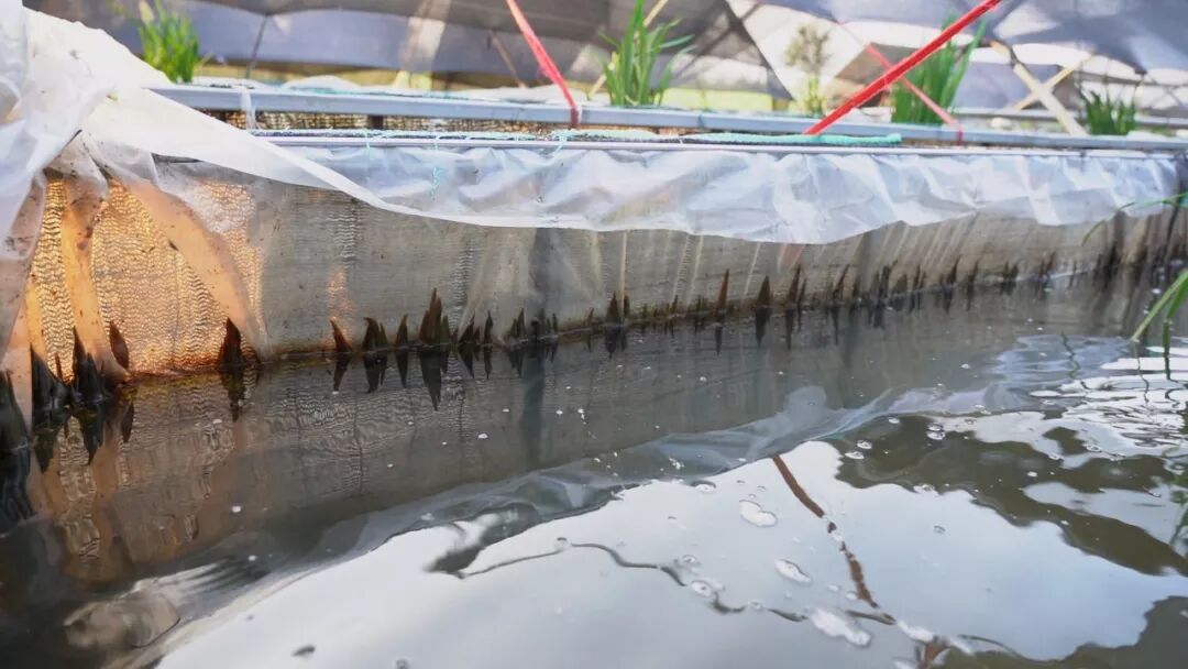 帮小妹在走访过程中发现一个怪现象,养殖池内的水蛭白天都趴在了池边,本应该在池底躲避阳光的水蛭,为什么会集体爬出水面?