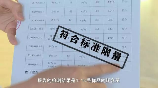 随后,记者在安乡鸭踏胡渔场和多个农贸市场共购买了5条淡水鱼,同时在长沙市场购买了5条淡水鱼,送往权威机构进行鱼体内“铜”残留量检测试验。几日后,记者在湖南省分析测试中心,拿到了10份活鱼样品的检验报告。