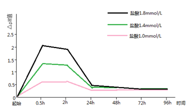 从图中看出,添加盐酸后0.5小时,pH降幅明显,但仅持续到2小时,pH开始反弹,一天后基本上恢复到原来的pH值。该实验结果印证了养殖水体通过泼洒盐酸、醋精中和来降低pH,不仅需要量很大,而且泼洒后,pH虽有明显降幅但容易反弹,不能持久。
