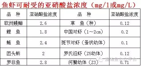 亚硝酸盐中毒症状:一般情况下,当水中亚硝酸盐浓度在0.1mg/L以下时,水生动物可以正常生长;但亚硝酸盐浓度达到0.1mg/L时,随着浓度的升高,鱼虾红细胞数量和血红蛋白数量逐渐减少,血液载氧能力逐渐减低,出现组织缺氧,此时鱼虾摄食量降低,鳃组织出现病变,呼吸困难、躁动不安或反应迟钝,丧失平衡能力、侧卧,此时如果解剖鱼类会发现鱼类血液为黑紫色或红褐色,甚至由于改变了内脏器官的皮膜通透性,渗透调节失调,引起充血,呈现与出血病相似的症状,一般称为"褐血病",亚硝酸盐对虾、蟹的毒性更大,主要表现为对肝脏的损害,虾、蟹中毒时鳃受损变黑,最后死亡。